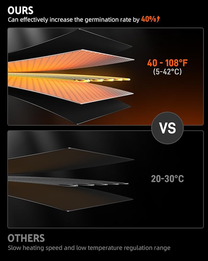 - Professional reliability: warms 10-20°F above ambient room temperature. Provides constant temperature to improve vegetable, plant, herb, and flower seed germination