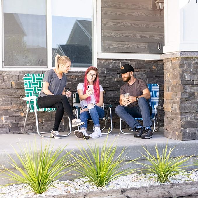 - LIGHTWEIGHT AND DURABLE: Our aluminum frame is rust-free and conveniently lightweight. The UV-resistant webbing is sturdy and designed with a little stretch for ease and comfort. These lawn chairs fold flat, allowing you to easily carry them and store them in your trunk or garage when not in use.