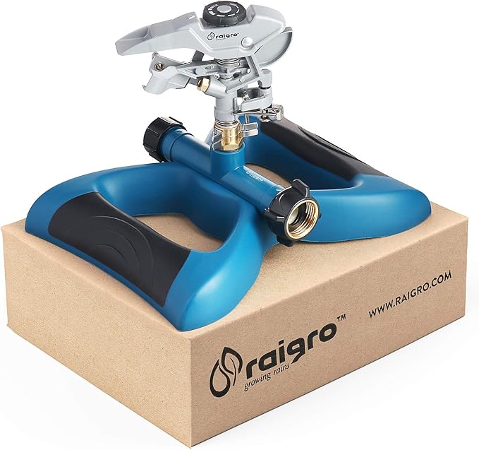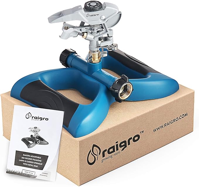 Lawn Sprinkler with Metal Head - 360 Degree Pulsating Garden Water Sprinkler for Lawn - Waters up to 85 feet in Diameter, Adjustable Spraying Area and Distance