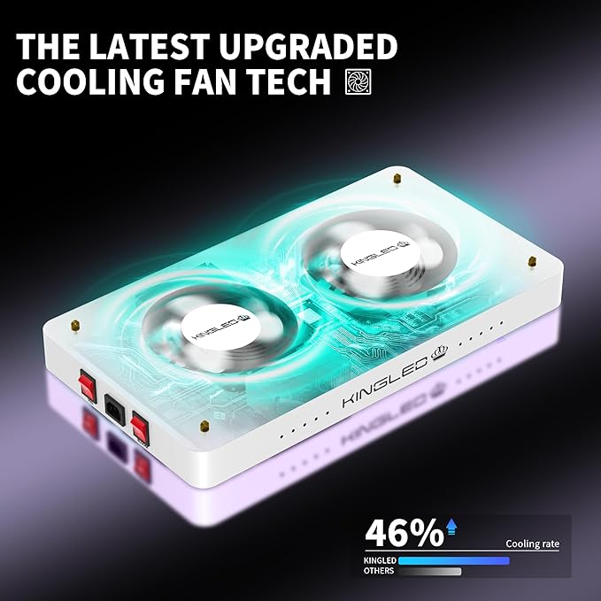 - Efficient Heat Dissipation: The aluminum heat sink and metal construction make excellent heat dissipation, keeping the temperature within optimal levels (50Β°f to 60Β°f); This cooling system prevents overheating, allowing the light to work efficiently without harming plants; Having the high-speed mute fans, the light remains quiet and stable, increasing its lifespan