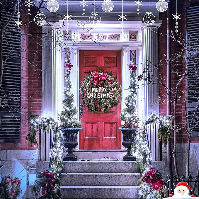 - White Christmas Lights: Still struggling to find power for your outdoor decorations? Our Christmas lights are solar powered and can be used outdoors without being restricted to an outlet. When fully charged, the solar panel can work for 8-12 hours. While supporting environmental protection, it can save you electricity bills. The high-efficiency solar panel and 200 high-quality lamp beads will work together to emit a stable and bright light that will accompany you all night