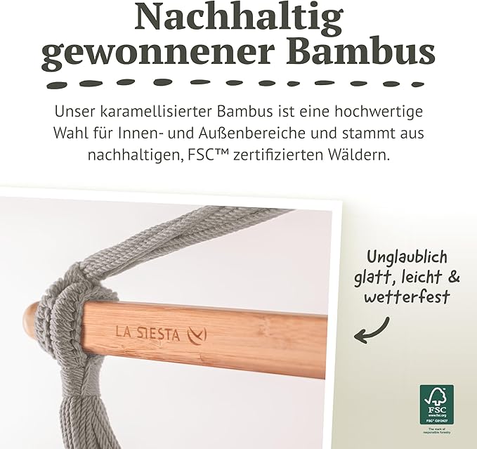 - WEATHERPROOF FABRIC: La Siesta's hanging chair features weatherproof fabric for care-free relaxation in any environment. Quick-drying and easy to maintain, it's a perfect hanging swing chair for outdoor, patio, balcony, or garden.