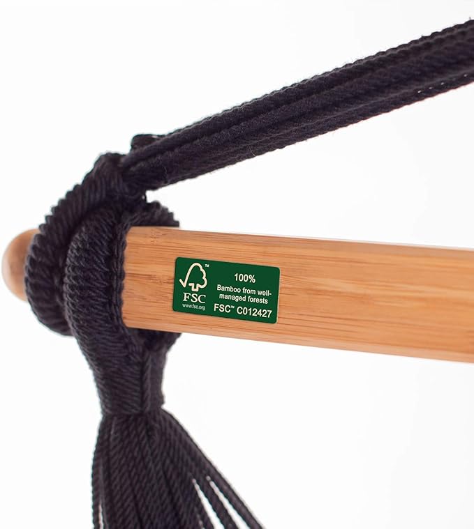 LA SIESTA® - XL King Habana Cotton Hammock Chair & CasaMount - Hanging Chair w/Suspension Kit for Walls Ceilings & Square Beams - Indoor Outdoor Swing Hanging Chair Bedroom Patio Balcony - Onyx