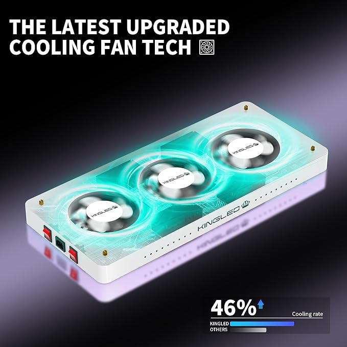 - Efficient Heat Dissipation: The aluminum heat sink and metal construction ensure excellent heat dissipation, keeping the temperature within optimal levels (50Β°f to 60Β°f); This cooling system prevents overheating, allowing the light to work efficiently without harming plants; Having the high-speed mute fans, the light remains quiet and stable, increasing its lifespan