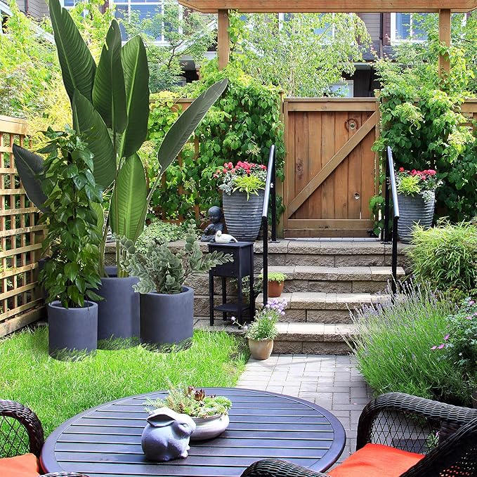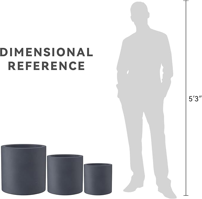 Kante 9.8",12.6",15.7" Dia Round Concrete Planter Set of 3, Modern Style Large Cylindrical Plant Pot with Drainage Hole and Rubber Plug for Indoor Outdoor Patio, Charcoal