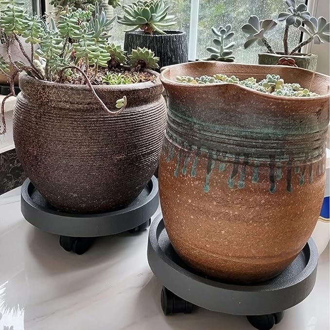 - [Indoor & Outdoor Practical Use]: It's designed to run on patios, wooden floors for outdoors. Also the caddy rolls smoothly over hardwood, concrete, and even carpet, which is perfect for indoor use. Not only suitable for plant pots, but also for anything in your home that needs to be moved, such as an umbrella, humidifier. Three available colors and sizes to perfectly match your home decor or garden.