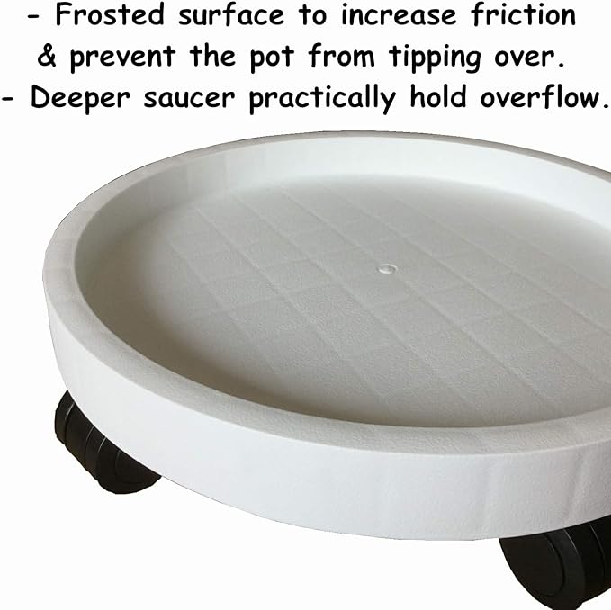 - [Non-slip & Easy to Clean Surface]: The surface of the tray is frosted to increase friction with the bottom of the planter, ensuring that the planter will not topple over during movement. The internal height of the saucer is 1inch deep enough, so it can practically catch and hold overflow. There are no drain holes on the surface, fortunately you can drill your own holes if needed.