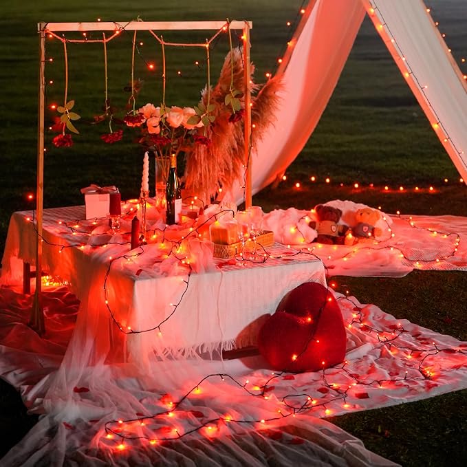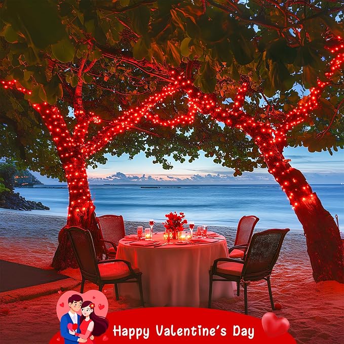 - Solar-Powered Red String Lights: Our red lights are powered by the sun, making them an environmentally friendly choice for your outdoor decor. Enjoy beautiful lighting without the need for electrical outlets. Each string features 100 bright red LEDs, perfect for creating a warm and inviting atmosphere. The red lights symbolize love and passion, making them ideal for romantic