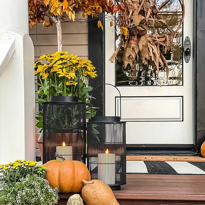 LampLust Outdoor Lantern Decorative Outdoor Patio Decor, 16 Inch Candle Lantern, Black Metal, Outdoor Lanterns for Patio Waterproof, Battery Included, Modern Farmhouse Front Porch Decor