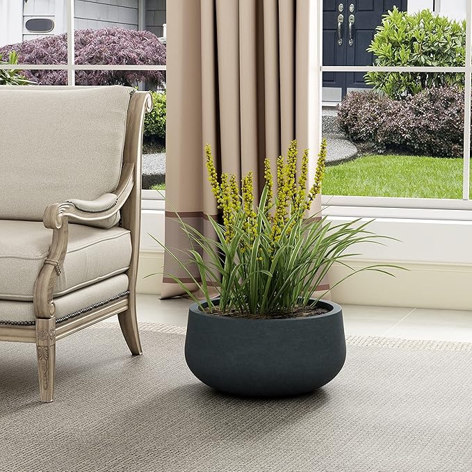 Kante 19.6" Dia Round Concrete Planter, Cement Plant Pots with Drainage Hole and Rubber Plug for Outdoor Indoor Garden Home, Modern Curvaceous Design, Dark Gray
