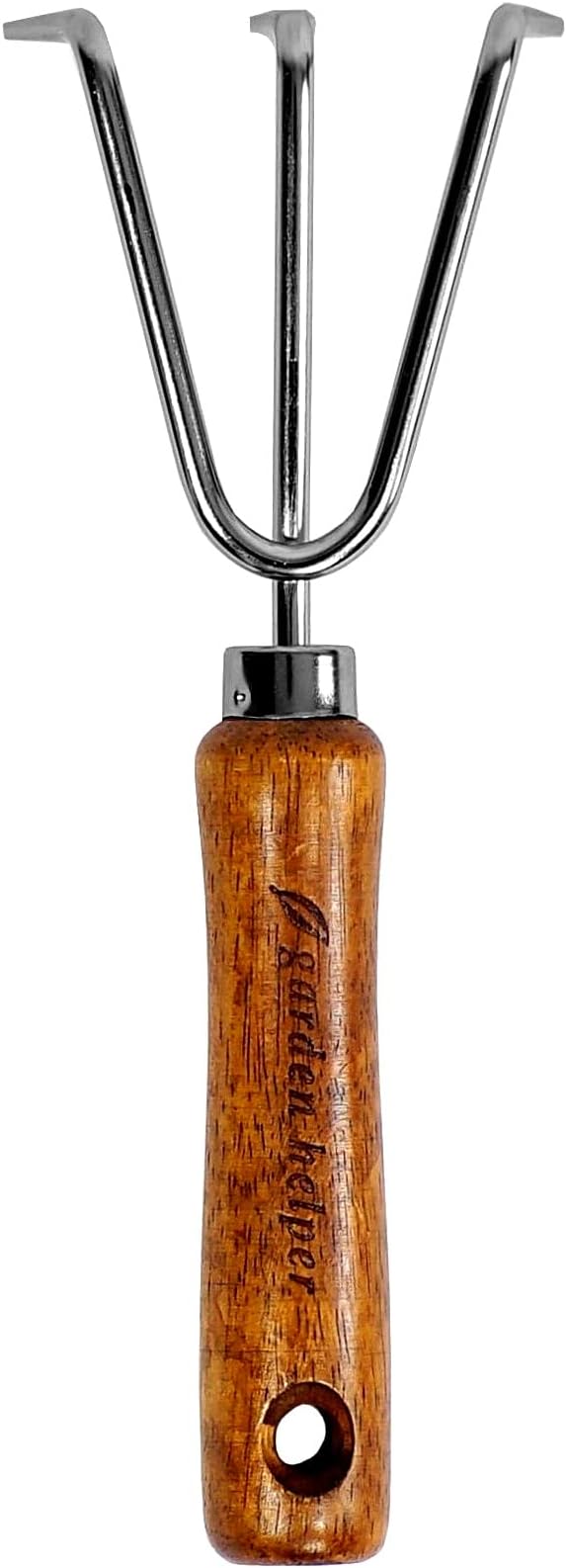 Hand Cultivator Garden Tool Heavy Duty Japanese Steel with Wood Handle, Manual Small Hand Rake Soil Tiller for Weeding, Digging, Cultivating, 3 Claws, Made in Japan, Silver