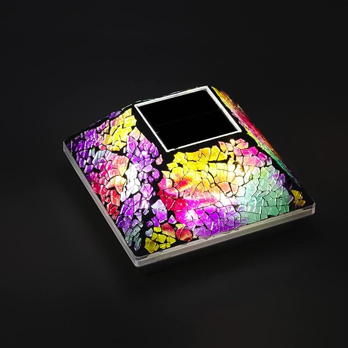 - 【Mosaic Design】The surface of solar post cap lights are covered with crackle mosaic glasses. Pure handmade means that each fence post solar lights are unique. The light will be reflected from the LED lights inside.