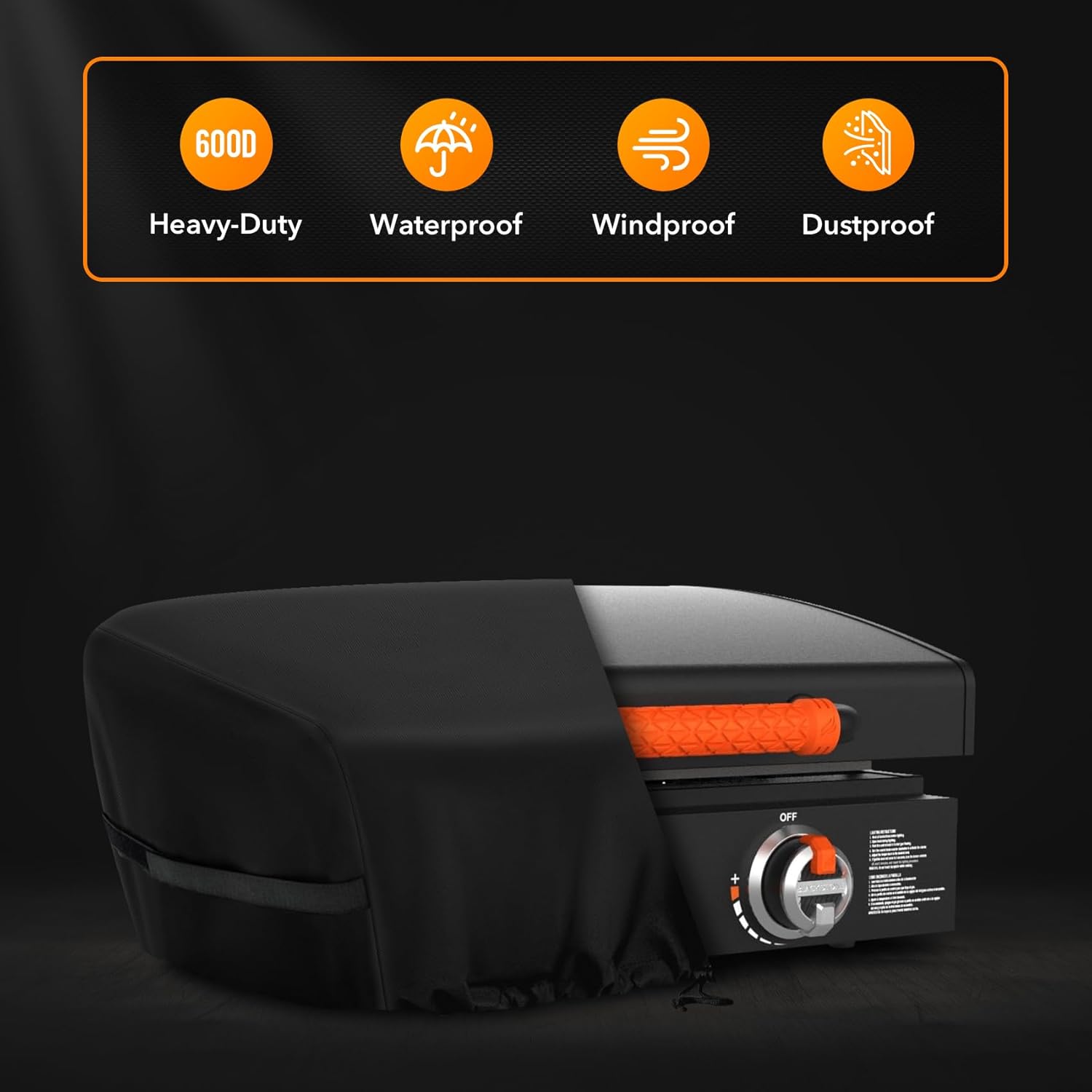 - Griddle cover comes in a neutral black color that won't clash with your backyard or patio décor. Because this BBQ Griddle cover is form-fitted, they provide a sleek, stylish and polished appearance.