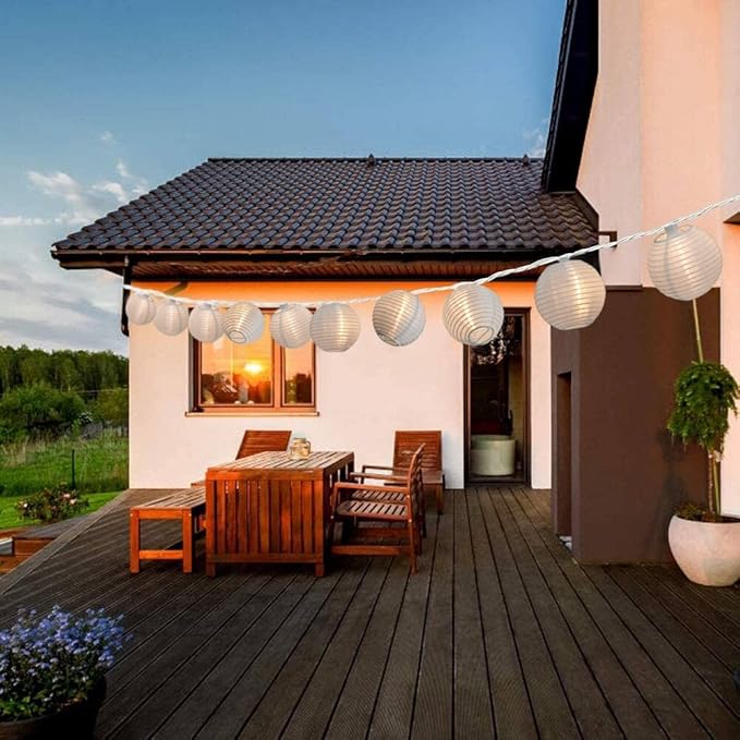 - UL Listed: Nylon material paper lantern plug built-in weatherproof technology for indoor/outdoor use. Made of nylon, shatterproof and weatherproof, practical and flexible string light can illuminate your patio, deck, garden, porch, gazebo, pergola, kitchen, dinner-room, cafe shop, office, or home with an elegant warm glow
