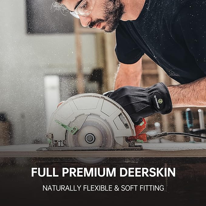 • Deerskin Leather Work Gloves - North American original genuine deerskin leather, nature tanning, comfortable and durable. High quality thick deerskin material, superior abrasion and puncture resistance, protect your hands from cuts and scratches