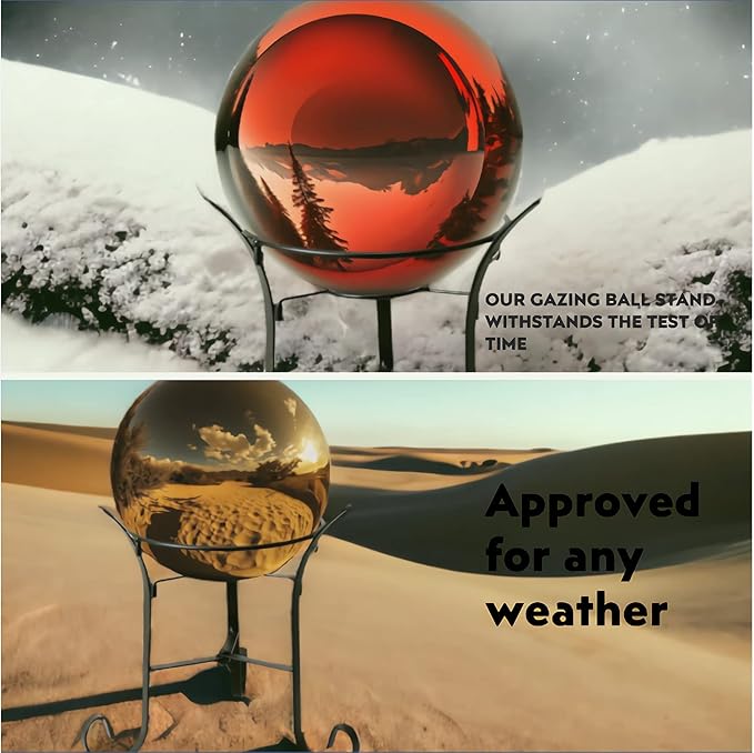 - STUNNING SPHERE STAND - Black finish will match any gazing globe no matter what the color! Itβs a striking ornament in the garden, can be placed on a patio, deck, front porch, lawn, It brings a romantic to your garden year after year. It approved for outdoor with no worry about weather condition.