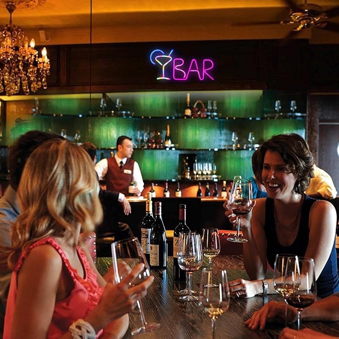 - 【MULTI-PURPOSE DECORATIVE NEON LIGHTS】This pink & blue LED neon bar sign is suitable for home bar wall decor, business, valentine's day, halloween party, festival, etc. The color of the neon light can instantly attract her or his eyes, provide a romantic atmosphere and make people feel relaxed and happy. Our neon lights can also be a perfect gift for man, women, father, mother, girlfriend, boyfriend, especially suitable for people who love wine, beer, cocktail, whisky, etc.