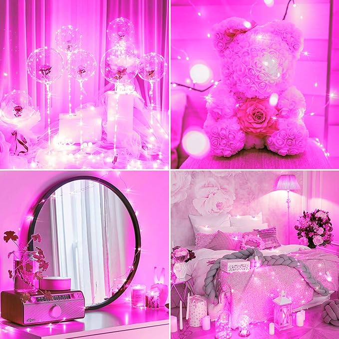 - 【8 Impressive Twinkle Modes】Our solar twinkle lights have 8 modes for you to choose from. In a lively party, you can choose the “chase mode” to ignite the atmosphere; in a romantic confession scene, you can choose the “wave mode” to enhance emotion. Besides, these pink solar lights also have a memory function to save the last mode you set, a great relief!