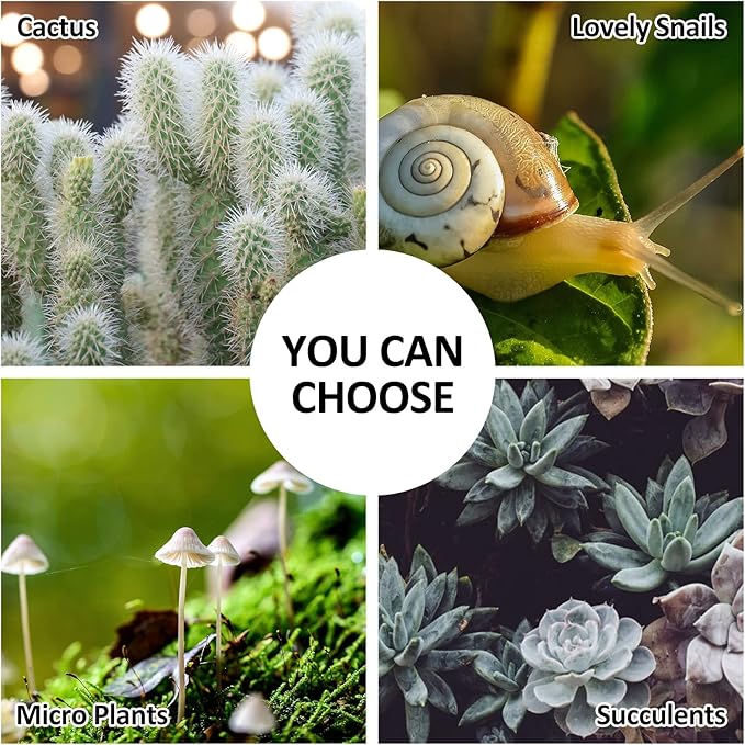 - [Ideal for Small Plants & Mini Creatures] Perfect for nurturing a variety of small plants such as ferns, moss, succulents, air plants, and cacti. It can also serve as a temporary home for tiny creatures like snails, spiders, and earthworms.