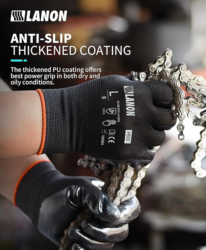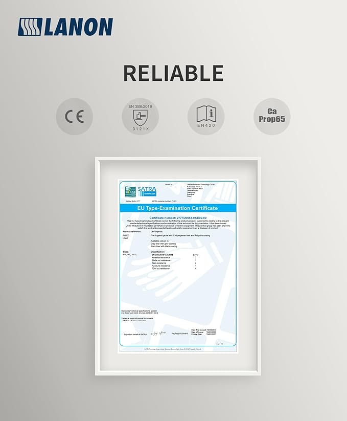 - Next-level Performance - LANON men's work gloves are certificated by CE, with Standards EN 388:2016, EN 420, and meet CA Prop.65 regulations for phthalates. We guarantee your 100% satisfaction with our products. If you are not satisfied with our products, we offer a 100% refund.