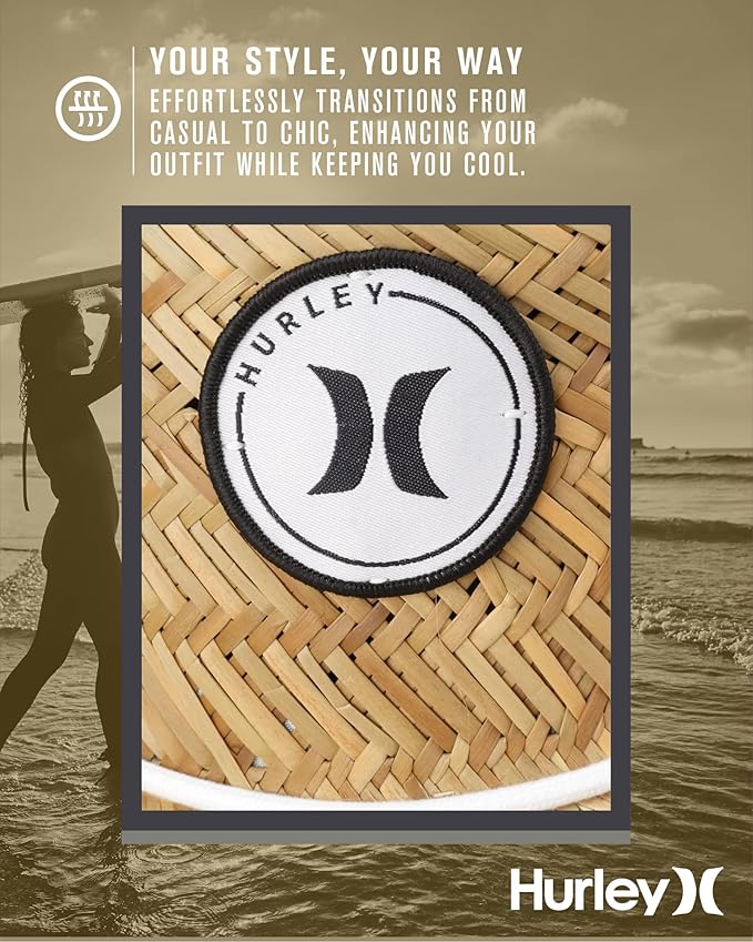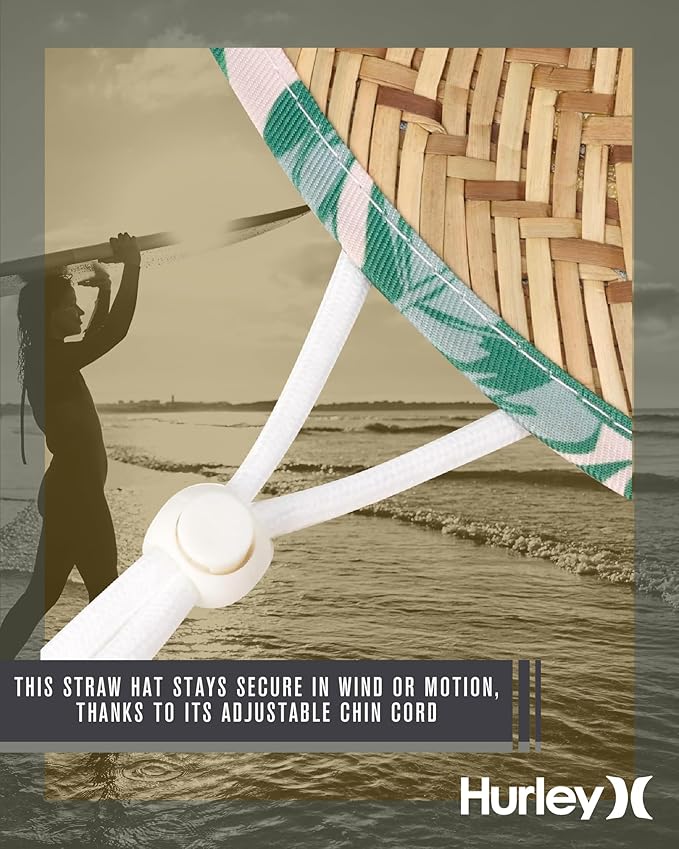 Hurley Women's Straw Hats - Real Straw Hat Medium Brim and Adjustable Chin Strap
