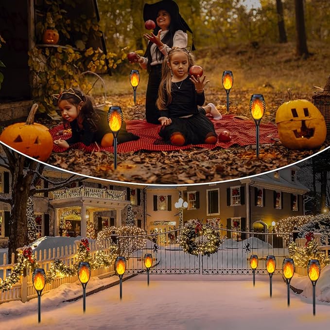 - Flickering Flames Torch Lights: IkeeRuic small solar outdoor lights cast a lovely warm glow like flickering flame, a safe alternative to the real “flames”. Solar torch lights are perfect outdoor decorations for patio, garden, porch, yard, pathway, making your yard stand out in the community.