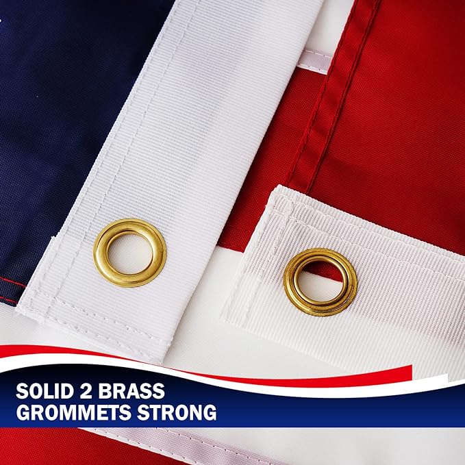 - ★Perfect Embroidered Stars - Using professional and precise craftsmanship, we carefully embroider the stars and stitch them on the flag through independent stitching double stitches. In order to improve the durability of the flag, we used four rows of lock stitches on the hem. By doing this, we have improved the anti-wear ability of the flag and ensure that the flag will serve you for a long time.