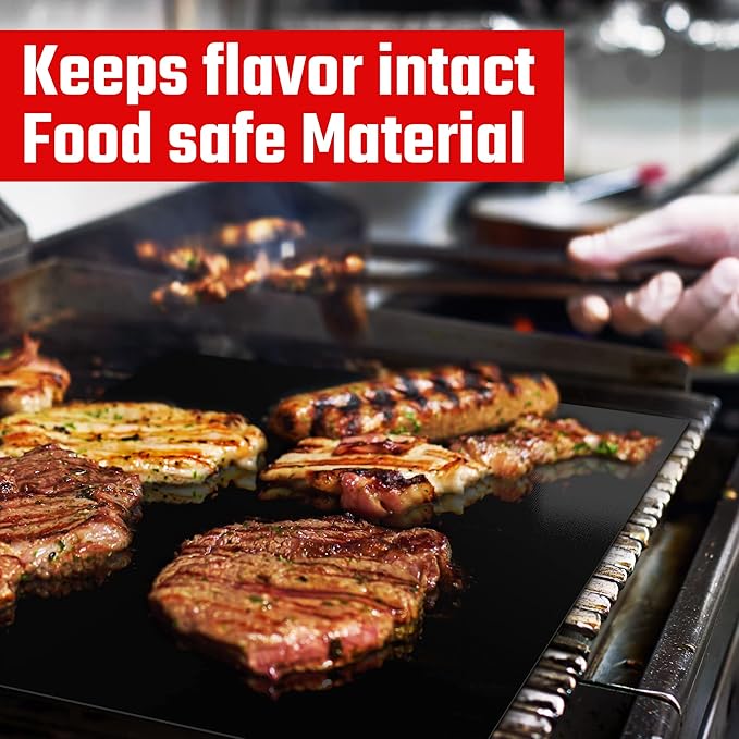- All Clean? Let's Keep It That Way- With our reusable BBQ Mat youβll be able to perfectly cook all your meats and keep your grill grease-free, with zero cleaning needed once youβre done. Our black grill mat is heat resistant up to 500 F, sport a PTFE fiberglass coating, are non-stick & dishwasher safe, are 15.7βx13β big and 0.2mm thick so they cover your entire grilling surface, for zero mess. Perfect pair with grill scrubber. A must-have tool for an outdoor BBQ grilling lover
