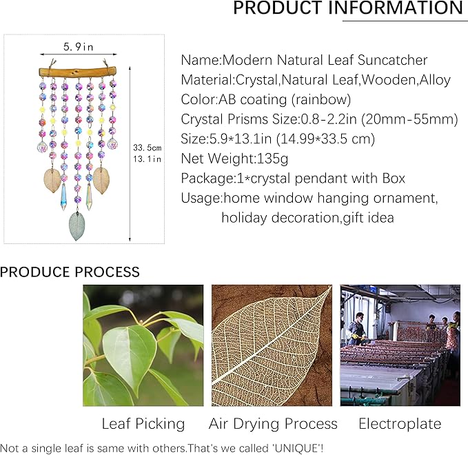 HDCRYSTALGIFTS Hanging Window Suncatcher Rainbow Maker Glass Crystal Mobile Wind Chimes with AB Prisms & Natural Leaf Drops Autumn Home Wall Art Decoration Gift