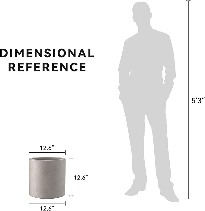 Kante 12.6" Dia Round Concrete Planter, Modern Style Large Cylindrical Plant Pot with Drainage Hole and Rubber Plug for Indoor Outdoor Patio, Weathered Concrete
