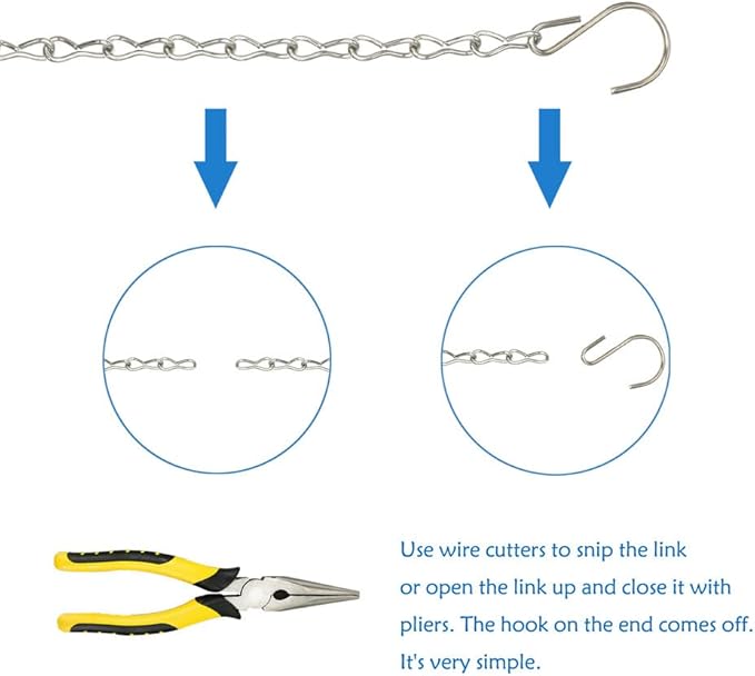- ✅Wide Applications: The hanging chains are widely applied for hanging bird feeders, bird houses, plant baskets, flower pots, suet baskets, lanterns, wind chimes, billboards, chalkboards, decorative and more. These hanging chains with hooks have endless uses, try to find it!