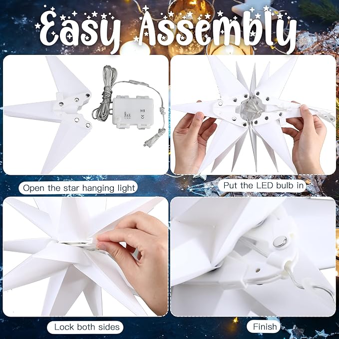 - 3 Dimensional Design: white Moravian star pendant light uses a delicate 3D design, just simply fold it to show a beautiful 3D appearance, with 18 corners and warm white light; Star lamp creates a warm, romantic and relaxing atmosphere for your room, terrace, garden, staircase, wedding, party, Christmas tree, etc