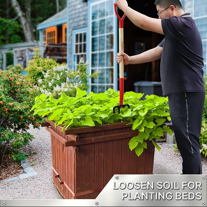 Garden Fork,4-Tine Spading Fork,Compost Fork,Steel Digging Fork,45Inch,Steel Y-Grip,Wooden Handel
