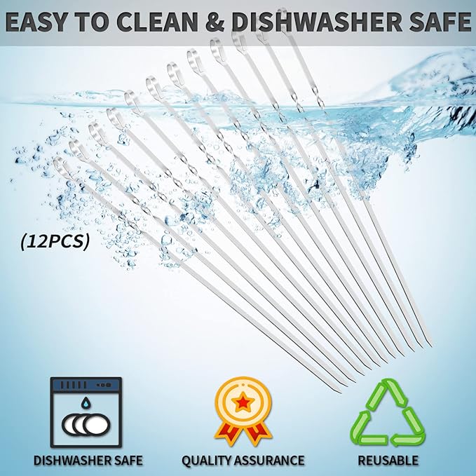 - 【DISHWASHER SAFER, REUSABLE】The kebab skewers surface is smooth that grilled food residue won’t get stuck onto the kabob skewer blade. After each time’s use just threw them in dishwasher. After wash the metal stick will be like new. You can use again and again, totally save you money.