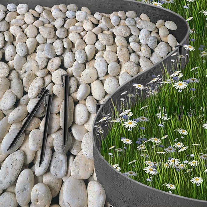 - Easy Installation: Only need bend it to the shape of the landscape you want, insert spikes onto edgingβs top side then plug spikes into ground. With 20 stakes Citrine Garden landscape edging, everyone can be a yard-design master. Use it to create a raised layer of rocks, mulch or soil and block spreading of grass.You can also purchase extra stakes in Citrin Garden store.