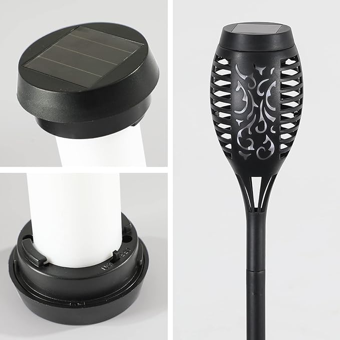 - Solar-Powered Outdoor Lights: Equipped with a solar panel, FAISHILAN solar torches can work for up to 6-8 hours in summer and 4-6 hours in winter after being fully charged. FAISHILAN solar-powered outdoor lights will provide vivid and dancing outdoor decor for gardens, patios, parties, camping, BBQs, and holidays