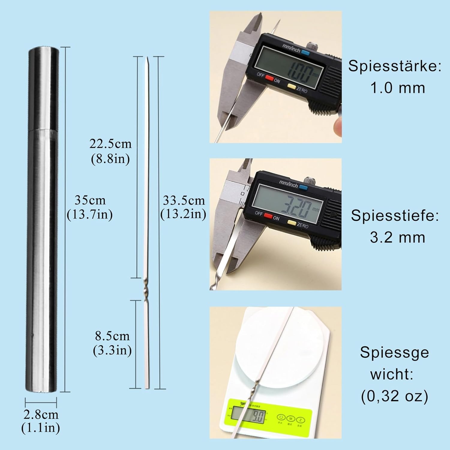 - 【Ergonomic Handle Design and Easy for Storage】These metal skewers come with an ergonomic handle design for comfortable grip, ensuring a non-slip and convenient barbecue experience. They are also designed for easy storage. Additionally, our kabob skewers for grilling come with a stainless steel storage tube, keeping the skewers dry and clean, making them easy to carry and store.