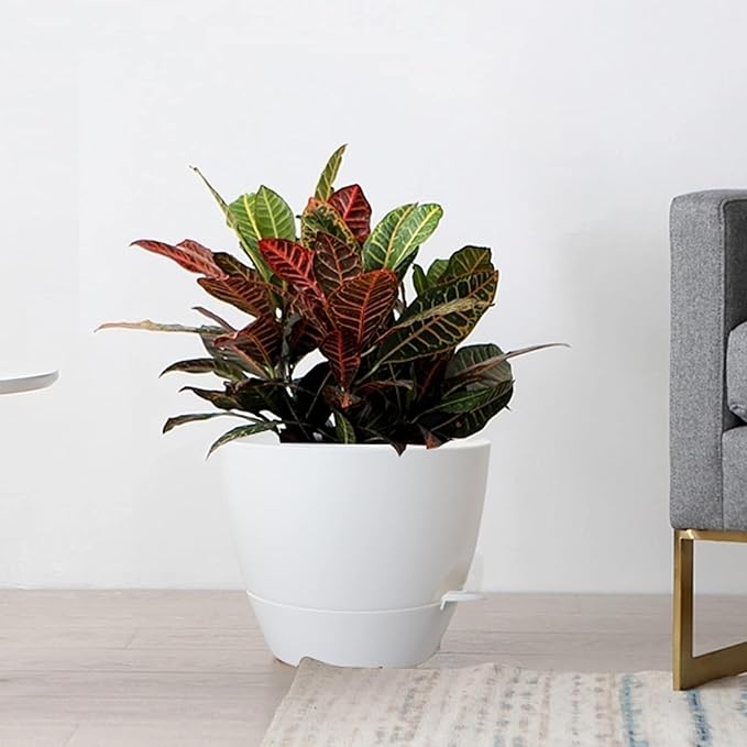 - Self Watering Pots: Set of 3 plastic planters with mesh drainage holes and deep reservoir for indoor outdoor garden plants and flowers