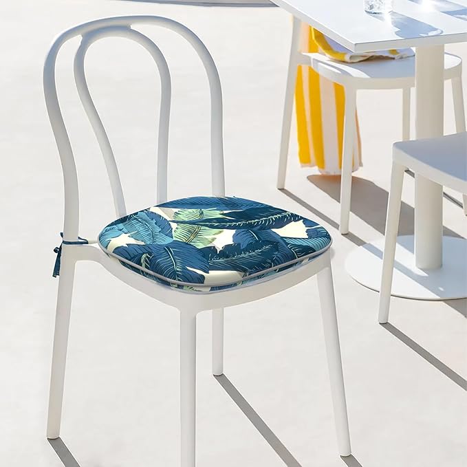 Indoor/Outdoor Chair Cushions 16x17 Inch, Patio Chair Cushions with Ties, All Weather Seat Cushions for Patio Furniture Home Garden Chair Use, Set of 2, Swaying Palms Blue