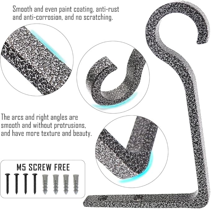 - 【EASY TO INSTALL】This package includes 2 plant hooks, 4 screws and 4 wall anchors. Each screw is a standard M5 screw, 1.2 inches long. All you have to do is screw the screws into the wooden fence posts, deck posts and even the interior walls. It looks great in a variety of different environments.