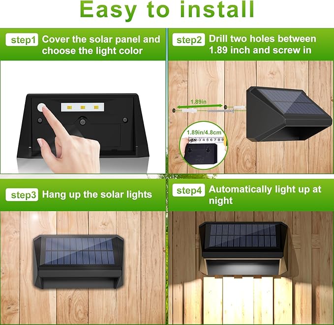 - 【Super Brightness& Long Working Time:】With a larger mono-crystalline silicon solar panel, simply charged under sunlight for 6-8 hours, LANSOW solar fence lights outdoor can reach a conversion rate of up to 20%, and produce an output of up to 40LM brightness. Large battery capacity makes them work from dusk to dawn and the working time can last more than 10 hours, way enough for daily lighting.
