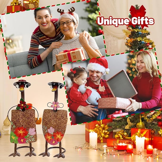 - 【Exquisite Metal Patio Decor】Unique gardener ducks shovel decoration comes alive in vivid colors and exquisite detailing. The captivating floral-decorated duck garden statues will lend a joyful vibe to your lawn decor, making them a delightful outdoor decor