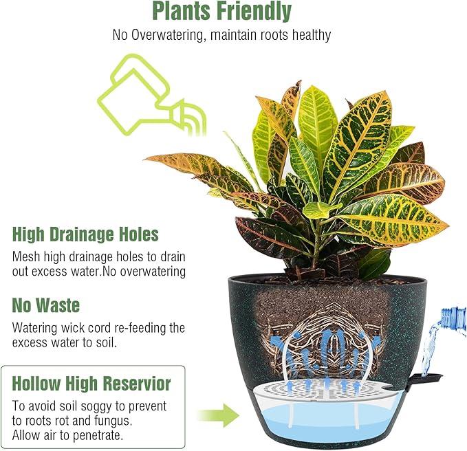 - Self Watering Feature: Removable watering feeder allows watering from bottom directly or watering from the top, preventing root rot.