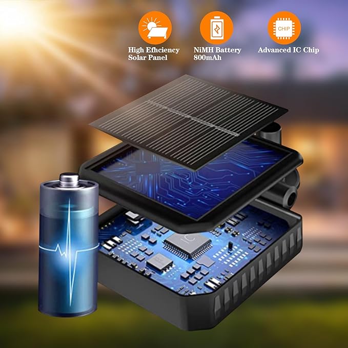- ✅【Energy Saving and Easy to Install】: Solar firefly light is equipped with high-efficiency monocrystalline silicon solar panels, built-in 1.2V, 800mAh Ni-MH battery, ensuring your The solar outdoor lights are fast charging, it can be fully charged in 2-4 hours under direct sunlight, and can be continuously lit for 18-20 hours (continuously lit all night). No annoying wires to install, and you'll be doing all the quick installation steps in 10 seconds, lighting up your yard all night long!