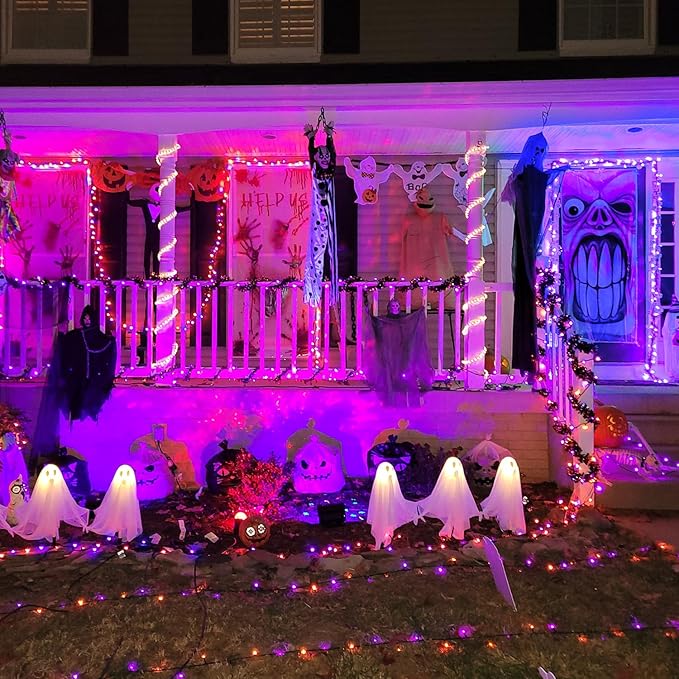 - 【Weatherproof & Safe for All Occasions】Withstanding various weather conditions (IP44), including heavy rain and snow, our orange purple Halloween lights are ideal for outdoor decorations. Safety is paramount. The insulated copper wire keeps the Halloween decorations lights cool to touch even after prolonged use, ensuring no heat or radiation. Low power consumption guarantees safety and a delightful Halloween experience.