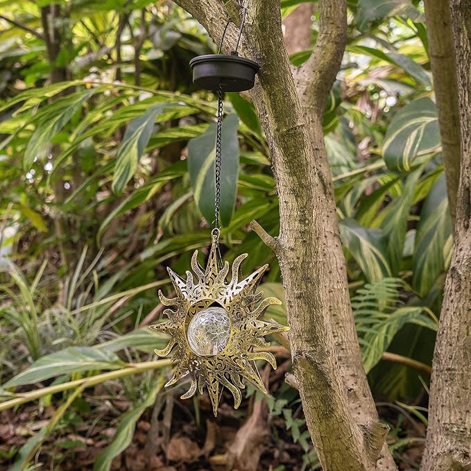 2 Pack Garden Decor Hanging Lanterns Outdoor Waterproof,Solar Lights Metal Sun Gifts Decoration for Yard Clearance Front Porch Lawn Driveway Patio Backyard Pathway Gardening Gift