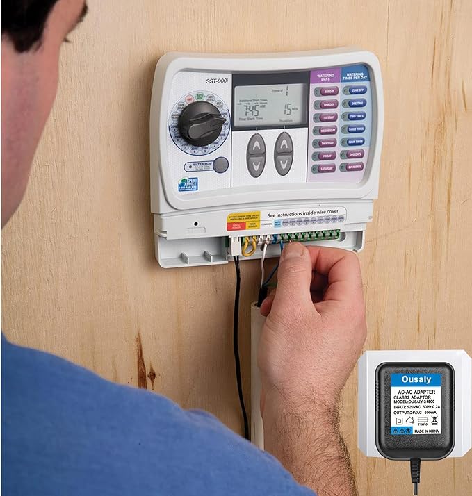 - POWER :Input volatage is 120VAC 60Hz; Output rating is 24VAC 500mA. Compatible with Rain Bird UT1 SST Series Orbit timer,sprinkler timer,sprinkler system,irrigation system, irrigation setup.Used this for sprinkler system power supply,sprinkler power supply ,sprnkler system box power adapte.