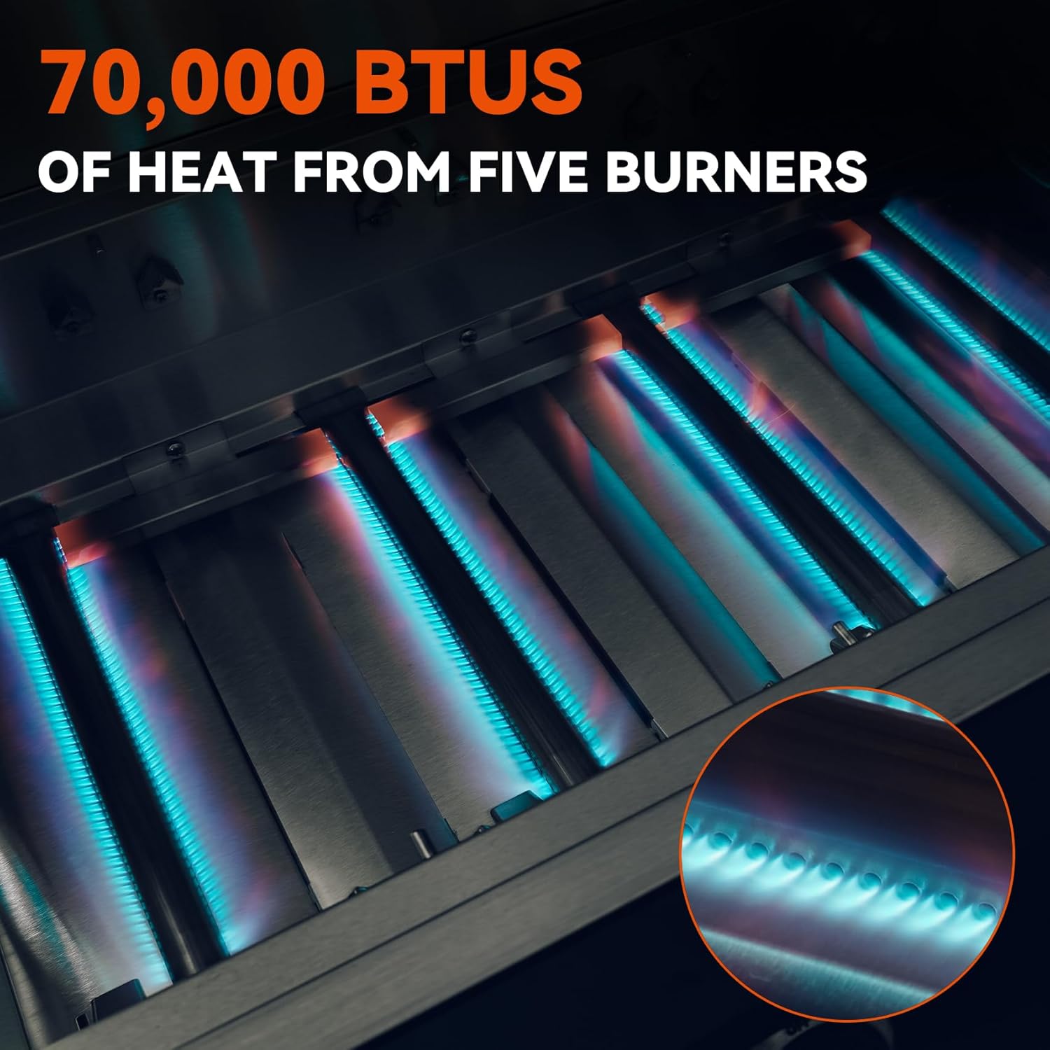 - 【Even and Efficient Cooking System】 The built in grill has 5 stainless steel tube burners to produce even heat; the efficient bbq grill help reduce your cooking time and provides steakhouse quality searing.