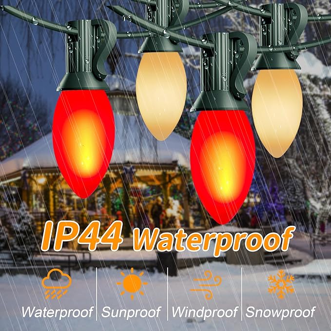 - Versatile Decor Options:C9 ceramic christmas lights outdoor are perfect for both indoor and outdoor use. Whether adorning your Christmas tree, patio, balcony, garden, lawn, gate, yard, or roofline, these lights will add a touch of elegance to any setting.