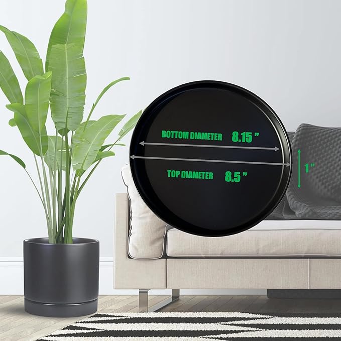 2 Pack Ceramic Plant Saucer Pot Tray 8 Inch, Planter Saucers 4 5 6 7 8 9 10 11 12 13 Inch for Indoors Outdoor, Durable Sturdy Flower Drainage drip Water Tray for Glazed Pots Base (8.5 Inch-Black)